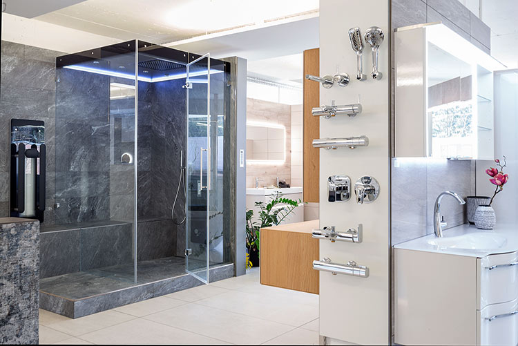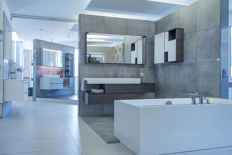 Über drei grosszügige Geschosse erstreckt sich unsere Ausstellung und wird durch eine grosse Aussenanlage abgerundet. Mehr als 1000 Quadratmeter Ausstellung warten darauf entdeckt zu werden. Bei unserer Fliesenauswahl und Badausstattungen bleiben keine Wünsche offen. In unseren Musterräumen und diversen Musterausführungen können Sie unser gesamtes Sortiment erleben, wie in Ihren eigenen vier Wänden. Fachmännisch verlegt, in jeder erdenklichen Art und Weise. Ob Wandfliese, Bodenfliese, Fliesen für Bad und Terrasse, Armaturen, WC und Duschanlagen – hier werden Sie fündig.